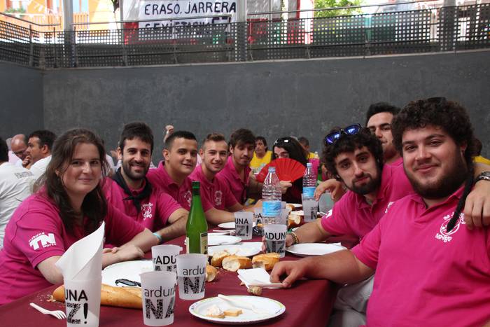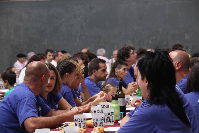 Atzo lehertu zuten txupinazoa Adunan, eta Kuadrillen Eguna dute gaur. Eguerdian, The Joselontxo´s txaranga ibili dira herrian giroa jartzen, eta eguerdian 14 kuadrilla bildu dira herriko frontoian bazkaltzeko. Antolatzaileek adierazi dutenez, inoizko jendetsuena da gaurko bazkaria, 250 pertsona inguru bildu baitira mahaiaren bueltan.
