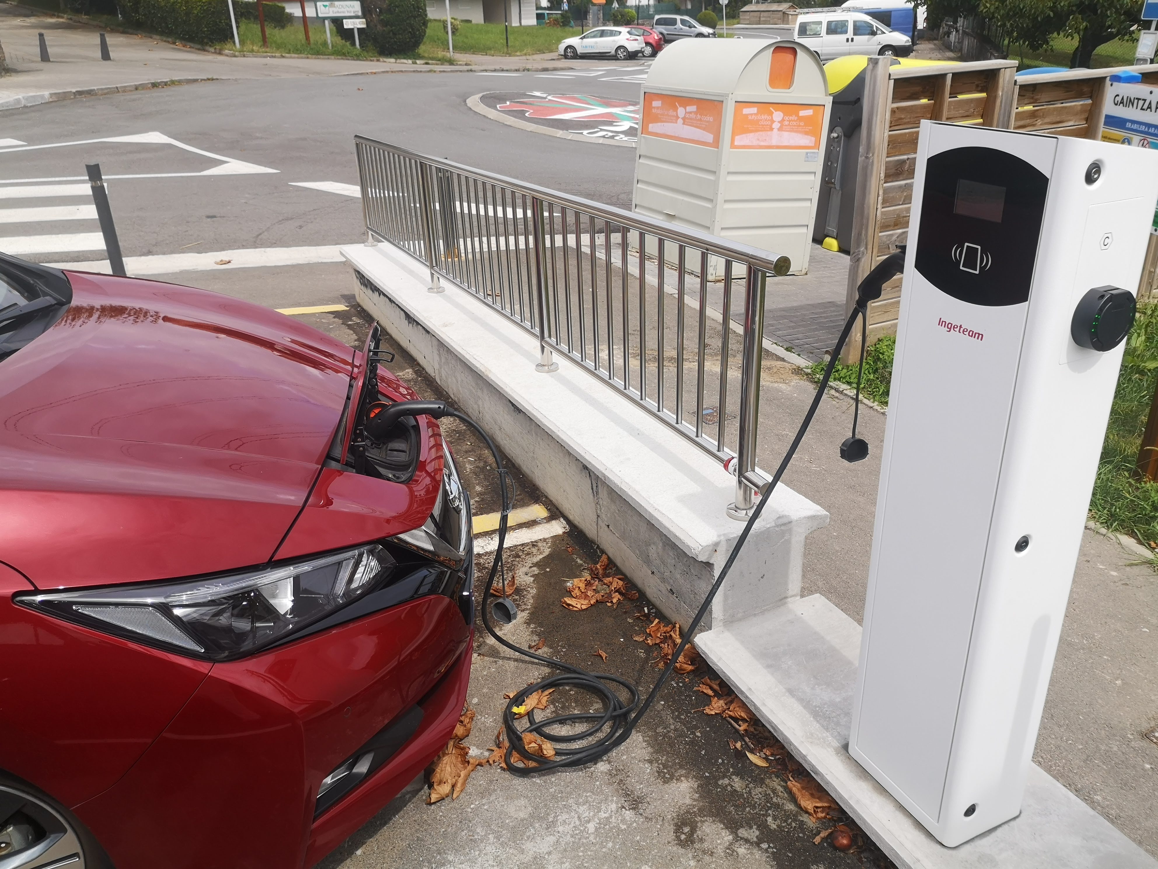 Adunan martxan dago ibilgailu elektrikoen kargagailua. Uztartzako aparkalekuan jarri dute eta momentu berean bi ibilgailu kargatu ditzake. Ibilgailu bakoitza, 22kw/h abiaduran kargatzen da.