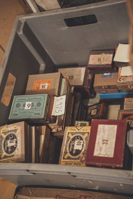 Mikel Prieto: Ez da erraza kalkulatzen. Batetik, kristalezko negatiboak daude kaxetan gordeta. Guztira, 4.500 edo 5.000 kristal izango dira. Eta, bestetik, karreteen biribilkiak dauzkagu. 63 kaxa daude eta bakoitzean 80 bat biribilki egongo dira… 100.000 eta 150.000 negatibo izango lirateke.