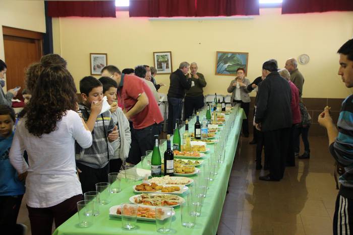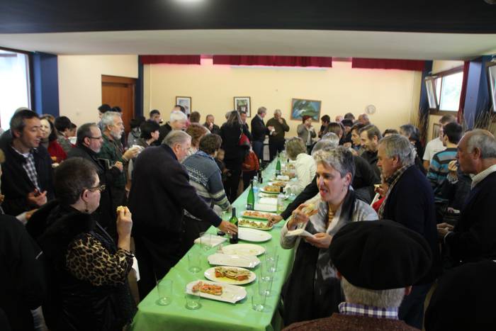 Emanaldi bereziaren ondoren festak kanpoaldean jarraitu du. Kanpai errepika izan da elizatik irten bezain laster. Herri argazkia atera, eta hamaiketako eder batez gozatu ahal izan dute. Bertan egin dute topa 400 urte hauengatik.