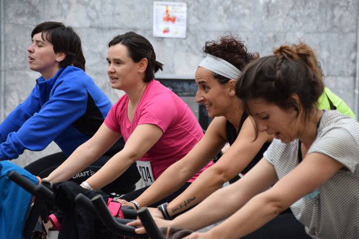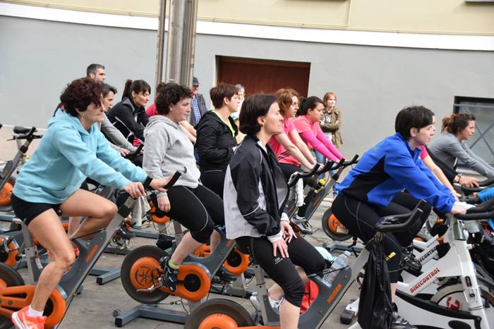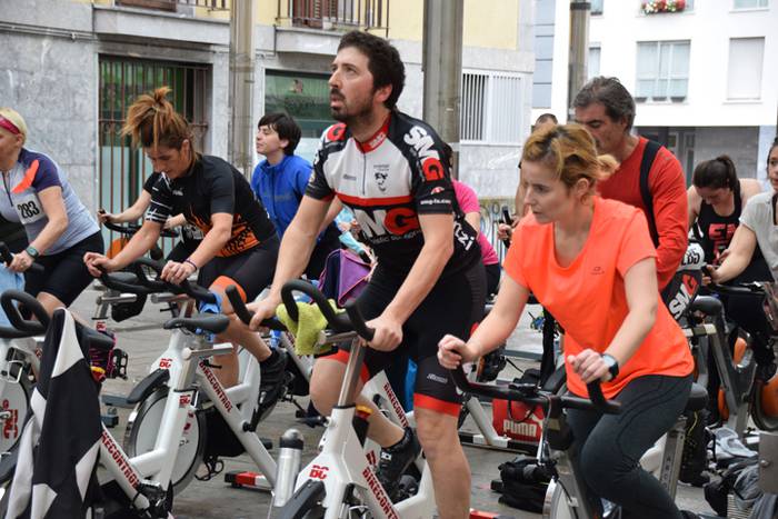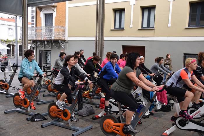 Errepidera atera ez diren txirrindulariek, aukera ederra izan dute Spinning-a praktikatzkeo Villabonako Berdura plazan. Bi orduz ibiltzeko aukera izan da, hiru saiotan banatuta. Igandea bada ere, jendea ez da kirola egin gabe geratu.