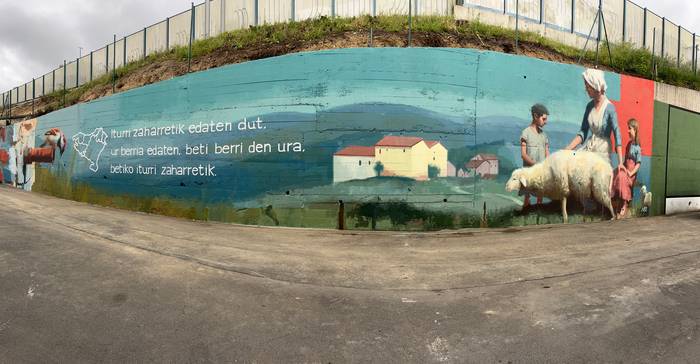 Aurretik ere Otañok horma-irudiak marraztu izan ditu Arroan, Fleming herri eskolako eraikinean, Olaederra kiroldegian eta baita Aljibean ere. Obra hori osatzera dator, orain, Txermingo ikastolaren eraikinaren alboan egin duena.