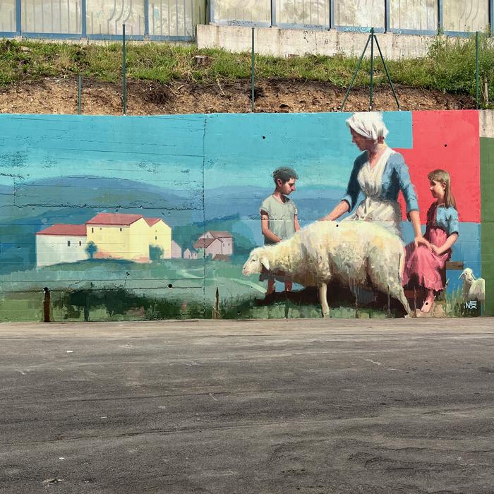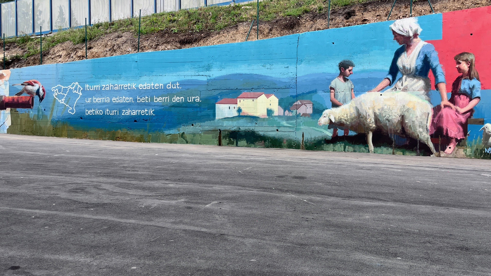 Txermin auzoan, ikastolaren alboko paretan, horma-irudia berria margotu du Nextor Otaño @nexgraff artista gazteak.