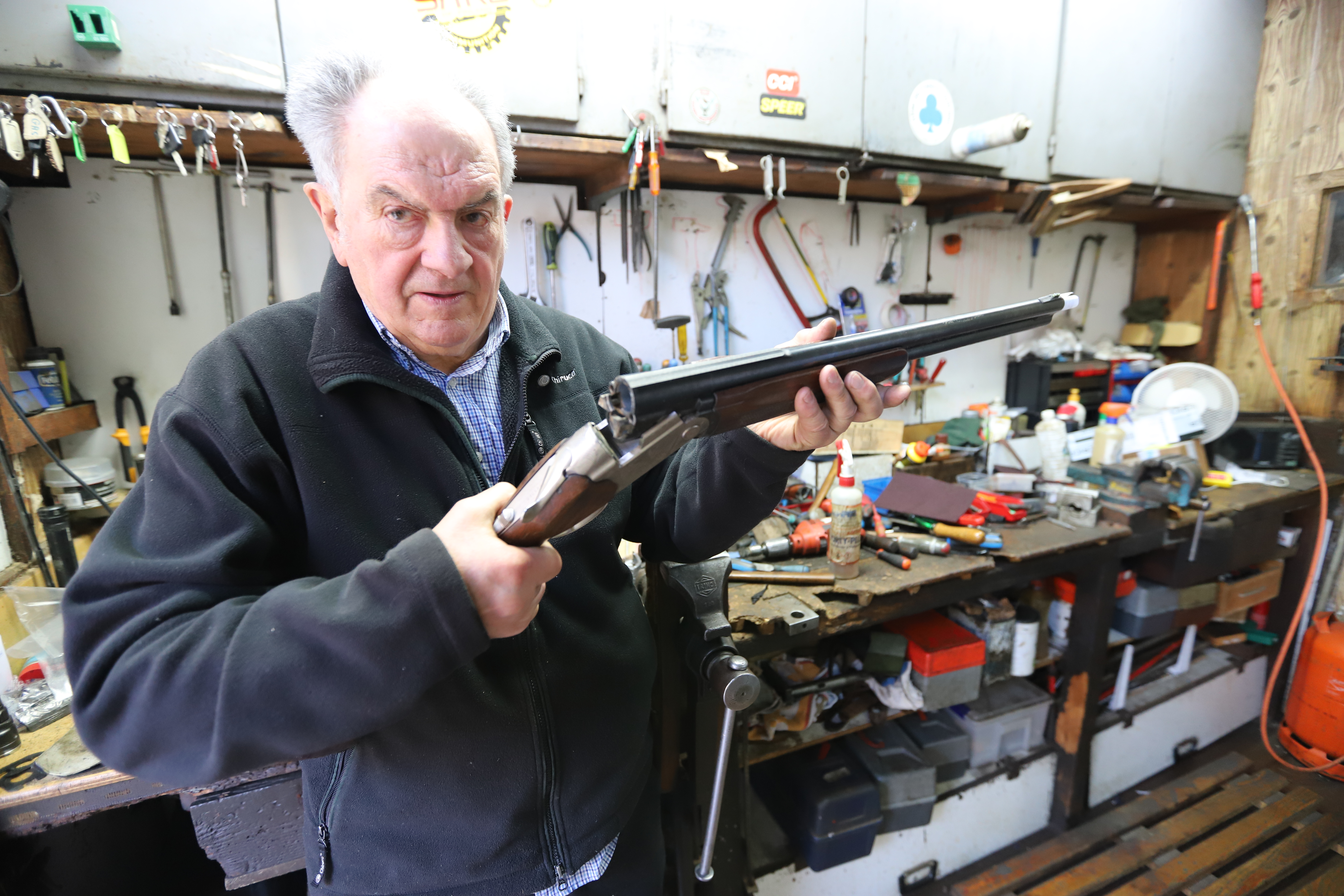 Bai. Kirol dendan eskopeta berriak saltzen ditugu, baita errifleak ere. Nire tailerrean, berriz, bigarren eskukoak izaten ditut, eta asko, gainera. Zoritxarrez, bigarren eskuko eskopeta gehienek urte ugari izaten dituzte, eta baimenak berritzeko legea oso zorrotza da gaur egun. Hori dela eta, askotan, beste norbaiti saldu ordez, ehiztariek senideren bati ematen diote eskopeta.