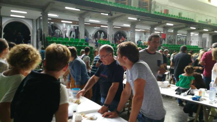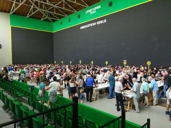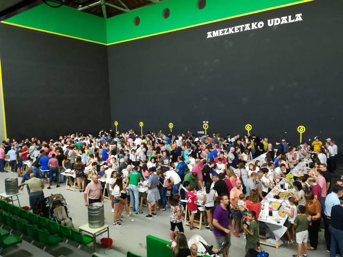 Ondoren, Eulia udaletxetik jaisteko ordua iritsi da, eta aurten musika eskolakoen ardura izan da, Iban Gurrutxagak gidatuta, agurrari musika jartzea. Gainera, emanalditxoa ere eskaini dute ondoren. Egunari segida emateko arrakasta izugarria duen zahagi ardoa jarri da abian. Euria egiteko arriskua zegoenez, frontoi barruan egitea erabaki dute, eta espero bezala, bete egin da. Herrian zein kanpoan bizi diren amezketarrek parte hartzen dute, festa giro aparta sortuz.