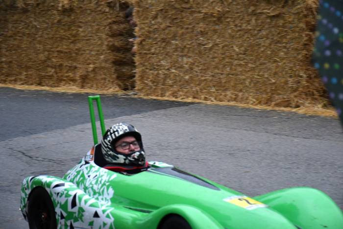Erorikoak behin baino gehiagotan ikusi dira Amezketako errepidean; ikusleen kirioak dantzan jarri badira ere, ez da istripu larririk izan. Errepidea bustita, zorua oso irristakorra izan dute parte hartzaileek.