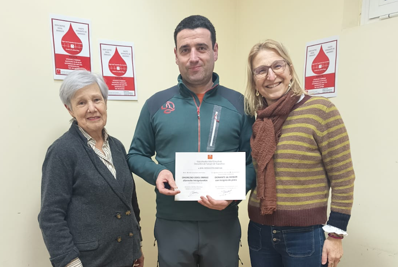 Otegik 25 aldiz eman du odola, eta horregatik Gipuzkoako Odol Emaileen Elkarteak ohorezko odol emaileen artean sartu eta zilarrezko intsignia eman dio. Bere herriaren, Anoetaren kasuan, 104 odol emate izan dira 2025ean, eta horietatik 9 izan dira berriak, hau da, lehen aldiz eman dutenak. Otsailaren 2an egingo dute hurrengo odol ematea, 16:30etik 20:30era, gaztelekuan.