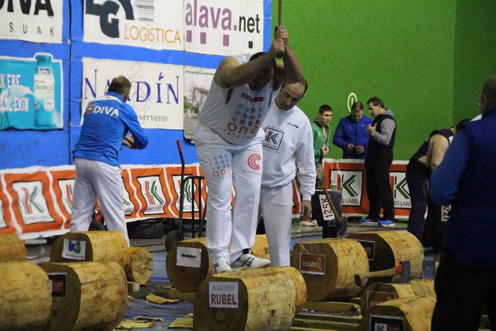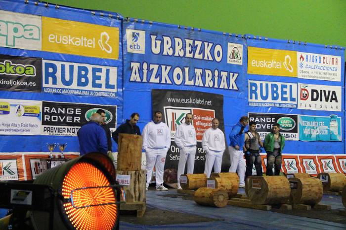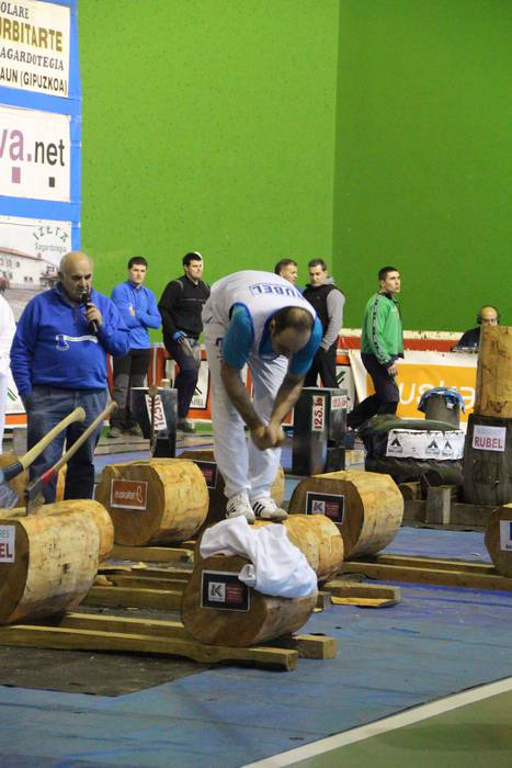 Lehen proban lortu zuten abantaila Olasagasti eta Etxeberriak; 45 ontzakoa zeinek kolpe gutxiagotan moztu neurtu ziren eta irabazi. Ondoren, tamaina bereko enborra erlojuz kontra ebaki behar izan zuten, eta Olasagastik bi segundo atera zizkion Mindegiari.