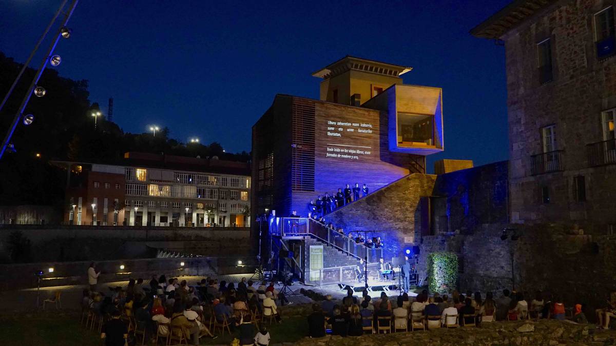 'Kristalezko bihotza' ipuin musikatua estreinatu zuten, atzo gauean, Euskal Pizkundea plazan. David Azurza tolosarrak egin du moldaketa.