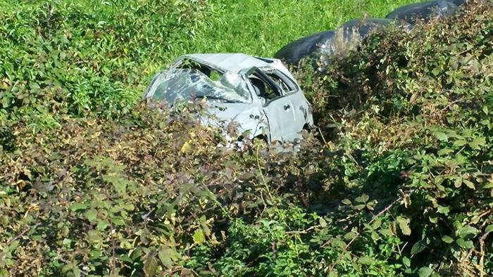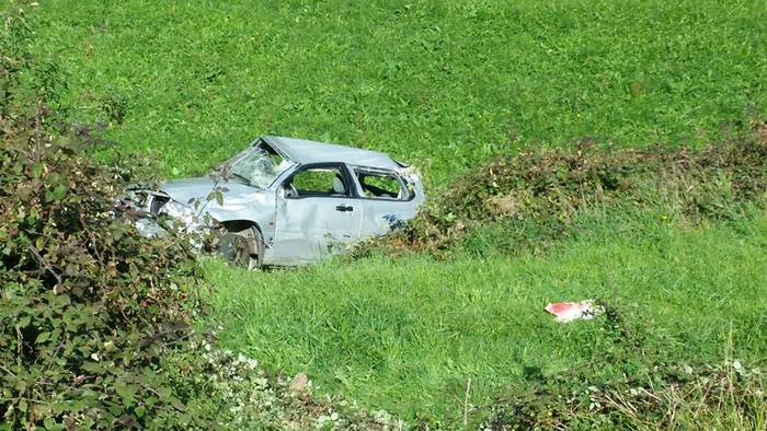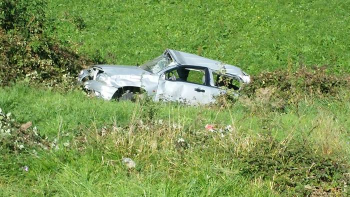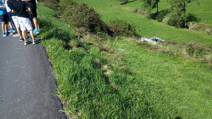 Bidaniako eskolaren parean autoa errepidetik atera eta zelaira joan da. Gidaria onik atera da istriputik.