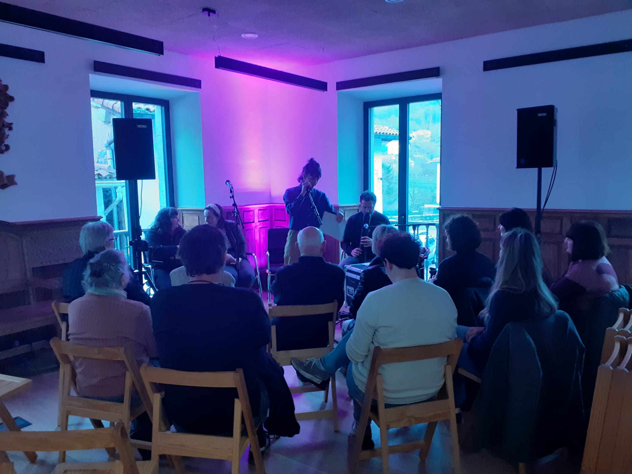 Bertso saioak Uxue Alberdiren Esne berriketan liburua du oinarri, eta Amorante musikariaren zuzeneko musikaren laguntzarekin abestu zituzten bertsoak Oihana Iguaran eta Nerea Elustondo bertsolariek, Alberdik berak gaiak jarrita.