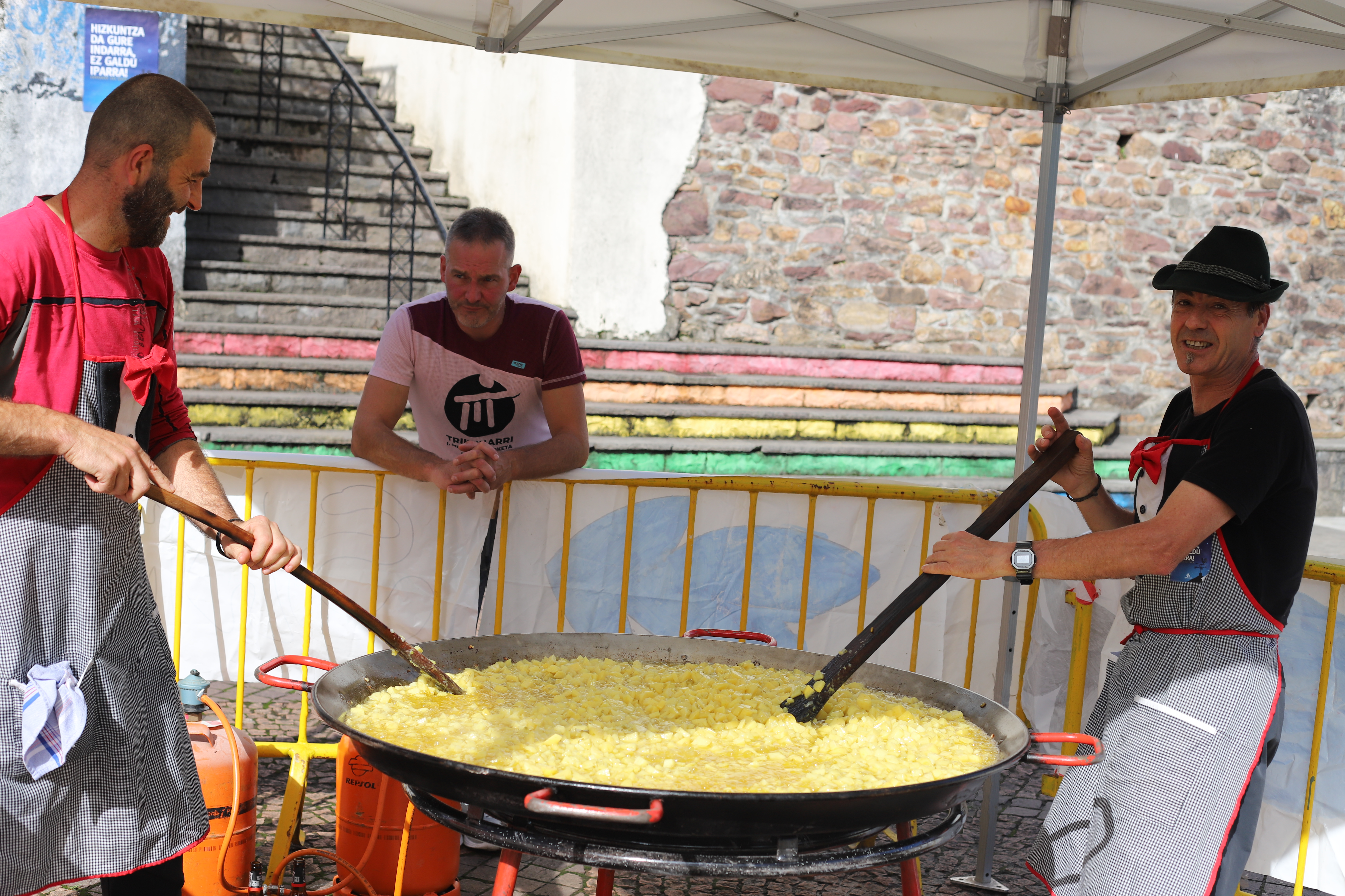 - 17:30. Txupinazoa eta basurdearen jaitsira, buruhandi eta erraldoiekin. Ondoren, patata tortilla eta sagardo dastatzea.