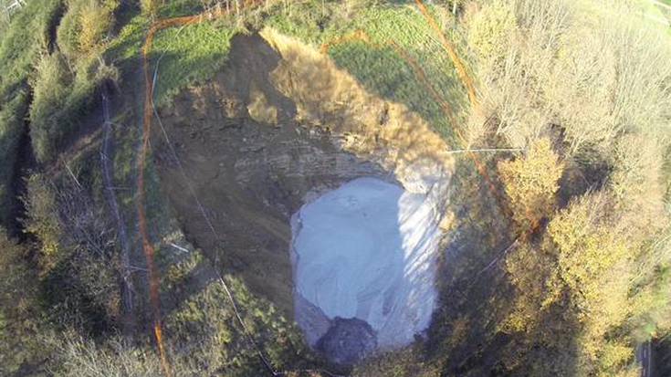 Hernialde albiste iturri da, beste behin, Abiadura Handiko Trenaren obretan sortutako zuloagatik. Tunela egiteko lanen ondorioz egin zen lehen zuloa eta, eguraldiak asko handitu zuenez, hormigoiz eta lurrez estaltzen hasi ziren, 2014 amaieran.