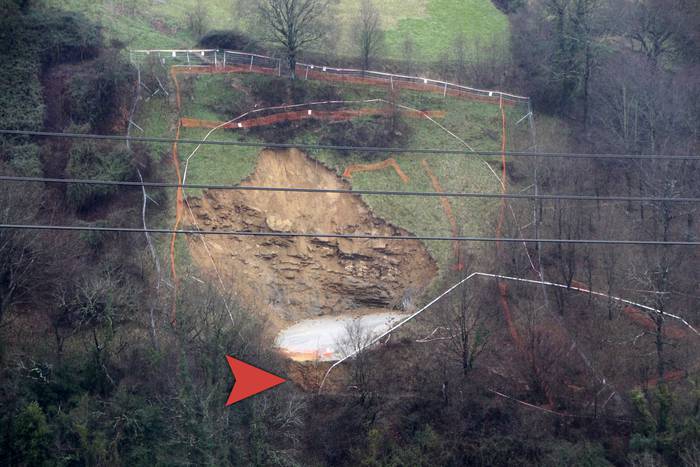 Orain, ordea, hormigoiz estalitako gune horren azpian beste zulo bat sortu da. Jaurlaritzak aurreikusitako 3,1 milioi euroko gainkostu horiek, beraz, igo egingo dira; izan ere, zulo berrira hormigoia botatzen ari dira orain, irudietan ikus daitekeen moduan.