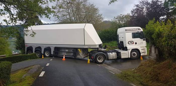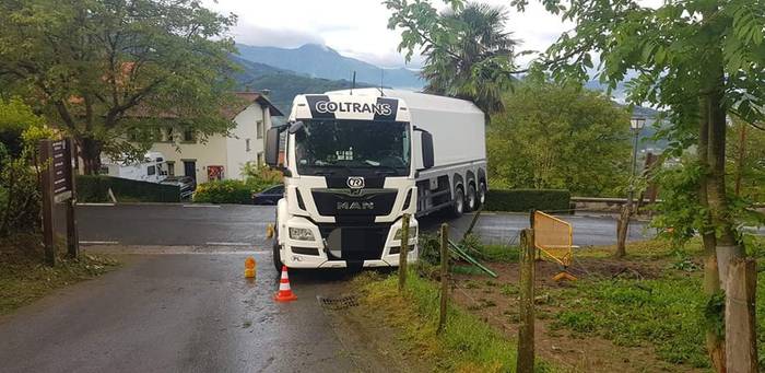 Ibarrako Izaskun auzoko errepidean kamioi bat gurutzatuta geratu da. Errepidean arretaz ibiltzea eskatu dute Tolosako Babes Zibiletik.