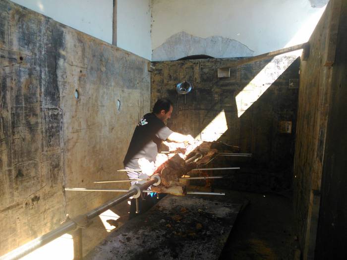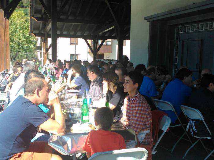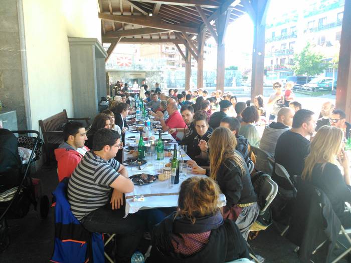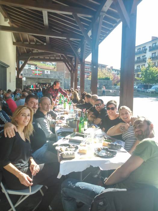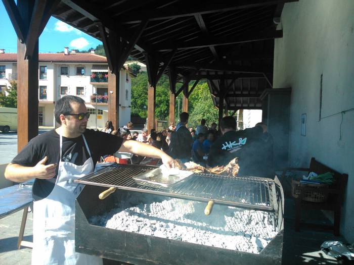 Gaur plaza postuz horniturik azaltzeko, atzo gauean hasi zituzten egin beharreko lanak. Esaterako, txekorra bazkarirako prest egoteko egin beharrekoak. Herri bazkarian jaten ari dira txekorra, 80 bat pertsona bilduta.