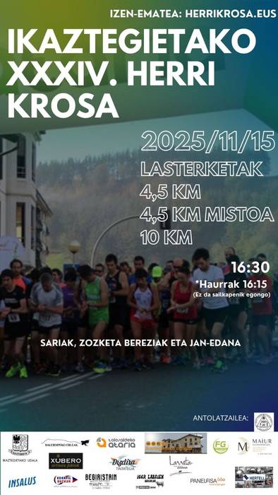 Herrigintza elkarteak antolatuta, Ikaztegietako XXXIV. Herri Krosa egingo dute larunbatean. Joan den urtean bezala, proba luzea eta motza izango dute aukeran korrikalariek; luzea 10 kilometrokoa da, eta motza, berriz, 4,5 kilometrokoa. Duela bi urte jarri zuten motza egiteko aukera, parte hartzea sustatzeko helburuarekin, eta horrek izan zuen harrera ona ikusita, aurten ere aukera hori jarri dute. Proba motzari, gainera, berrikuntza bat gehitu diote; mistoa aukera jarri dute, eta beraz, bikoteka parte hartu ahalko da.