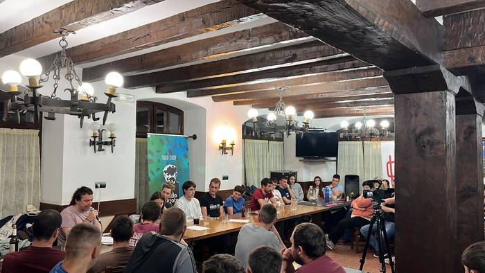 Ekainaren 8an izan zen bertso-saioa Tolosako Hiru tabernan: Aratz Arzelus, Izar Zelarain, Eki Mateorena eta June Aiestaran bertsolariak; Joanes Zubia gai-jartzailearekin.