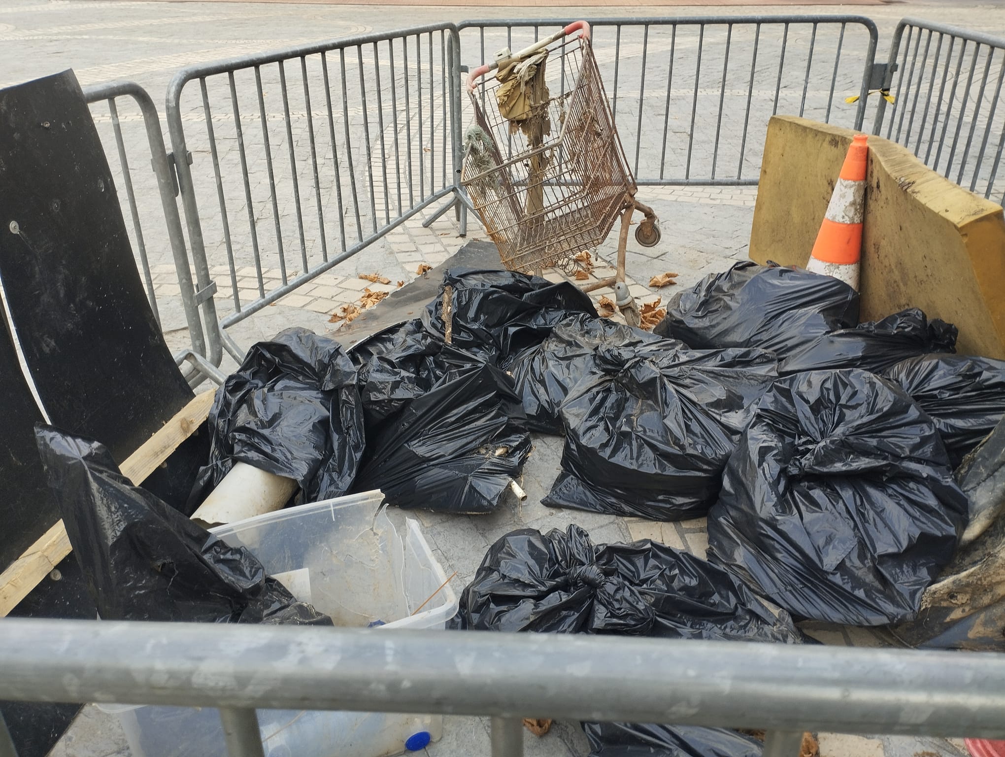Ibaien garbiketa egin dute Iruran eta bildutako zabor guztiak plazan jarri dute ikusgai.