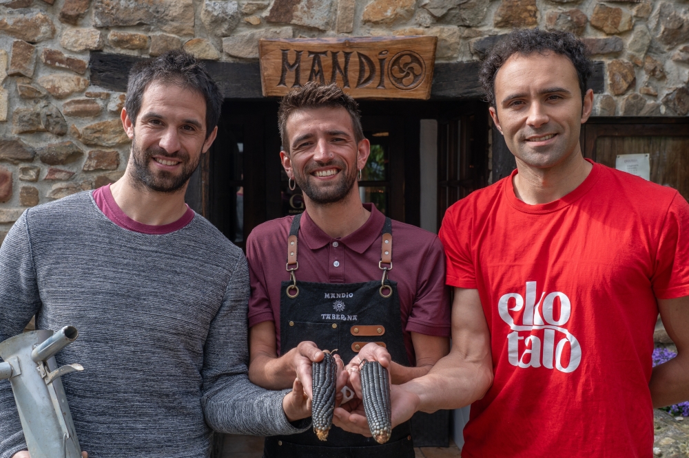 Zeraingo (Gipuzkoa) Mandio tabernako barra gainean zintzilik, ongietorria egiten diete bezeroei arto beltz pare batek. Barraren gainean, berriz, natxo-taloen platerak: hexagono forma dute, eta kolore morea. Eta ez, ez daude guakamolez lagunduta, tomatez eta haragiz baizik. «Olio bero-berotan frijitu, kolpe bat eman, azkar-azkar, eta Mendarte baserriko haragiarekin eta tomatearekin egiten dugu platera», azaldu du tabernako langile Joseba Albizuak.