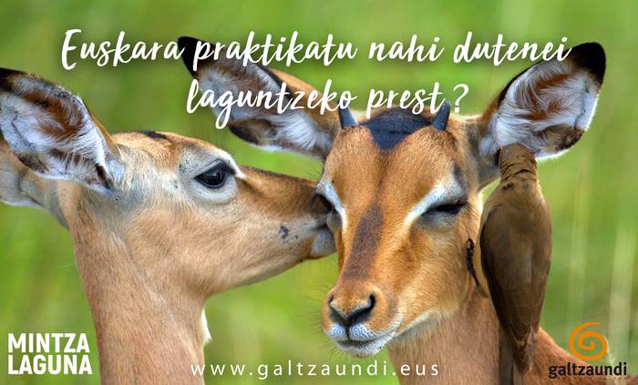 Euskara praktikatu nahi dutenei laguntzeko prest? Jarri zaitez gurekin kontaktuan 943 655 004 zenbakira deituz, galtzaundi@galtzaundi.eus posta elektronikora idatziz eta Tolosako Nafarroa etorbideko gure bulegoan.