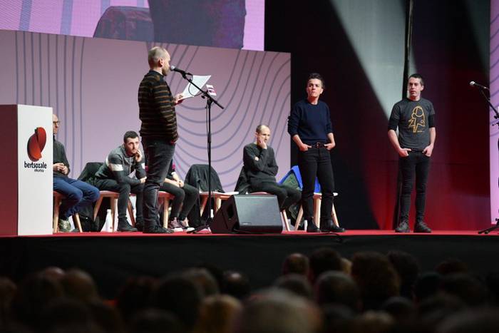 Edozein herritako jaietako saioan bezala aritu ziren. Iparragirre eta zortziko txikian umorez eta jostalari, pertsonaiak pertsonara ekarriz eta elkar ezin hobeto ezagutzen duten bi lagun minen arteko gertutasun antzeztu gabean. Oreka, bederatzikoa osatzeko, eta gainerako bakarkako lanen ezaugarri. Erdiz erdi asmatu zuten biek Ez dago B planik gaiari erantzunez. Ur handitan sartu ziren biak, baina bai ederki igeri egin ere! Maialenek han geunden bakoitzari belarritik tiradizo bana eman zigun, guk txaloz erantzun.