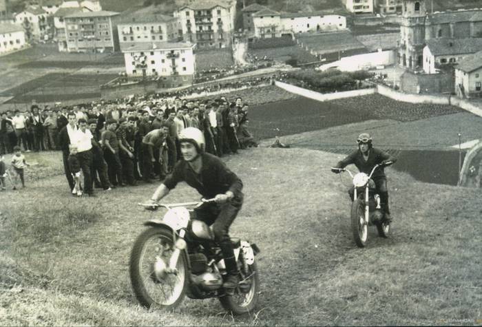 Lanean Andoaingo karrozeria batean aritu zen eta han hasi zen motoak probatzen, atseden orduetan, San Roke ermitatik Buruntza aldera, eta igande goizetan lagunekin. 1965eko argazkia badauka, Ostiral Santukoa, Herniora joan zenean motoz Polikarpo lagunarekin Zelatundik barrena. Bi mila pezetatan erositako Ossa bat zen, 125 cc-koa.