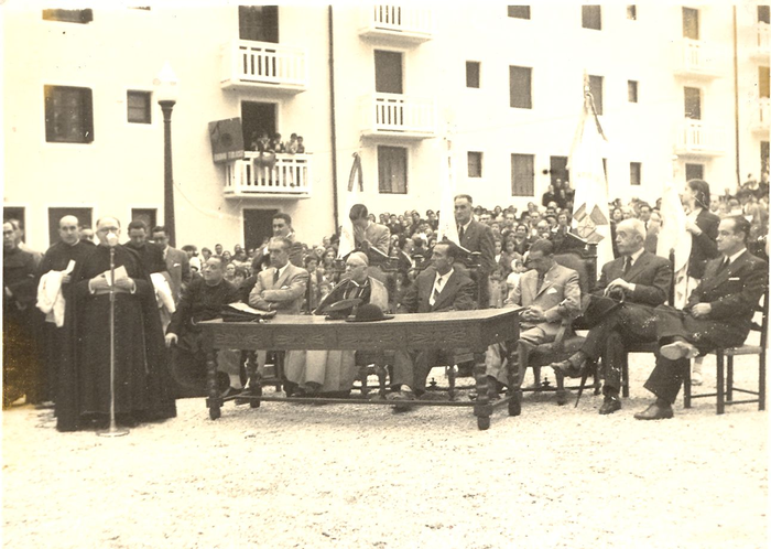 1952ko irailaren 14an inauguratu zen Izaskun auzoa agintari erlijioso eta zibil ugarirekin: Joakin Ruiz Jimenez Hezkuntza ministroa, Jaume Font i Andreu Donostiako lehen apezpikua, Tomas Garikano Goñi gobernadore zibila, Jose Maria Caballero Arzuaga Diputazioko lehendakaria, Wenceslao Maiora Telleria Santa Mariako parrokoa, Pedro Irazusta Gaztañaga alkatea eta diputatu probintziala, Jose Antonio Ponte Pikabea Espainiako Etxebizitza Institutuko delegatua Gipuzkoan, Joakin Labaien obren arkitekto zuzendaria, Santa Mariako kabildo parrokiala, Izaskungo Andra Mari erakunde ongile-eraikitzailearen zuzendaritza eta Accion Catolicako etxebizitza idazkaritza.