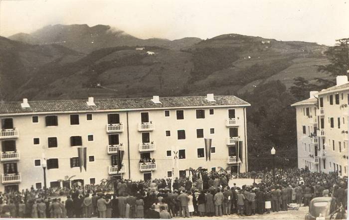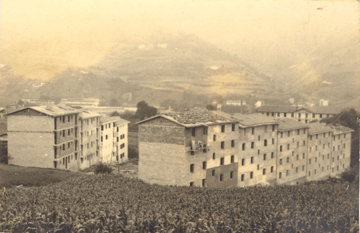 Lehen aipatutako langileei begira eraikitako lehen auzoaren kasuan zentratuko gara. 1950ean Joakin Labaien arkitekto tolosarrak 88 etxebizitzako proiektua egin zuen San Blaserako bidean, Bidebieta baserriaren ondoan, eta 1951ko urrian lanak hasteko lizentzia lortu zuten. Hiru bloke lineal ziren, ezkerrean 5 atari, eskuinean 4 eta behealdean beste 2, guztira 4 pisuko 11 atari, pisu bakoitzean eskuin-ezker, erdian plaza bat utziz. Sukaldea, hiru logela eta bainugelako etxeak ziren (eta dira), 50-60 m2 ingurukoak, eta beheko solairukoak zertxobait txikiagoak. Herriarekin ez zuen kale edo loturarik eta zerbitzurik ere ez zuen.