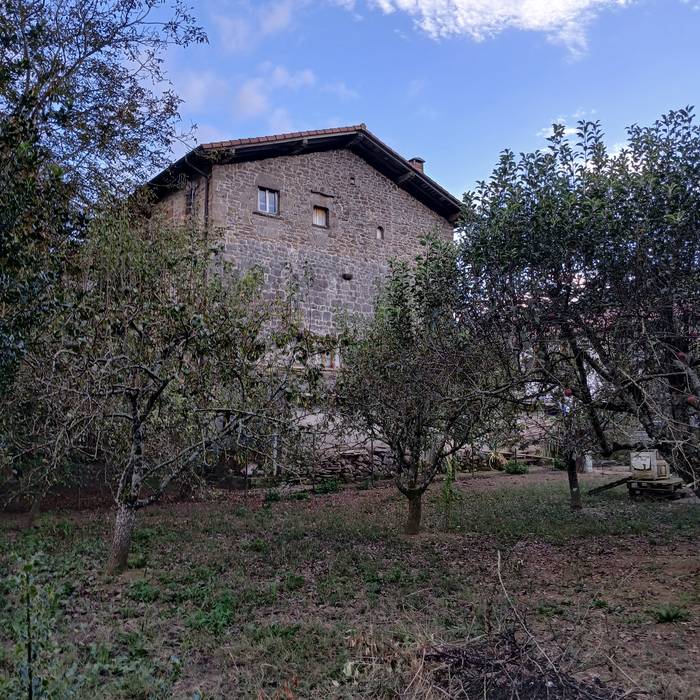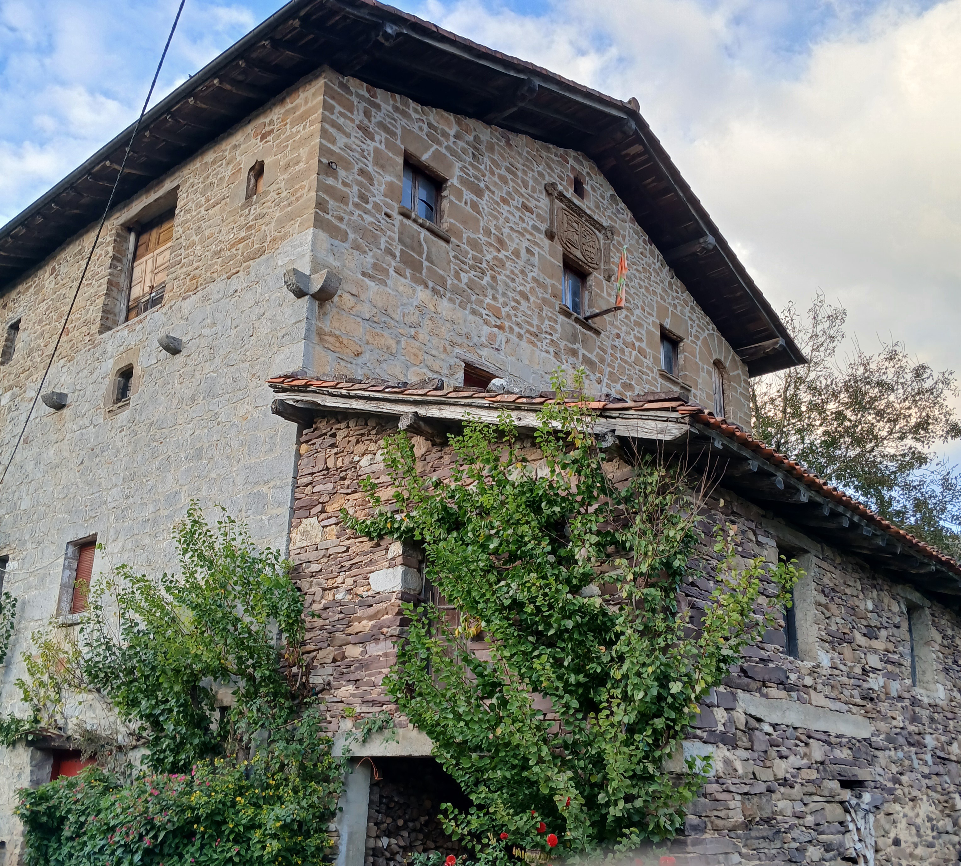 Oinplano lau angeluarra du eraikinak, ia-ia hutsunerik gabeko eta zarpailki landutako harria eta modiloiak (erlaitzeko apaingarriak) dituena, seguraski kadahaltsoaren (egurrezko gotorlekua) pisuari eusteko.