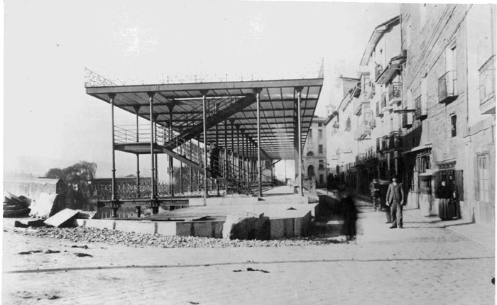 1898an hasi zen bizilagun elkarte bat merkatu berria eraikitzen. Uholdeen arriskua ekiditeko Solana kalea baino pixka bat gorago egin zuten. Eraikin berria burnizko zutabe batzuetan sostengatzen zen ibaiaren gainean, eta eraikin estua zabaltzeko leku gehiago zegoen. Horrela herriak irudi berria zuen Nafarroako sarreratik zetozenentzat merkatuaren balkoi luze eta egitura simetrikoari esker. Gaur egun, Tolosako ohiko argazkiaren elementu nagusienetakoa da, Idiakez jauregiarekin, Naparzubiarekin, Santa Maria parrokiarekin, Oria ibaiarekin eta Uzturre mendiarekin batera. Bigarren solairuan pasealekua zuen, eta sarbidea bi aldeetako eskaileretatik zuen. Proposamen ausarta izan zen; salmenta postuak hartzeko 74 metro luze eta 11 metro zabaleko espazio laua eta irekia zuen. Habearteak 5,10 metroko altuera zuen, burdinezko baranda eta eserlekuak, eta gainean egurrezko trabesak zituen. 1900 urtean inauguratu zuten Mujikaren obra, «handikiro», Linazasorok bere liburuan dioenez. Naparzubiaren zabalpena ere inauguratu zuten.