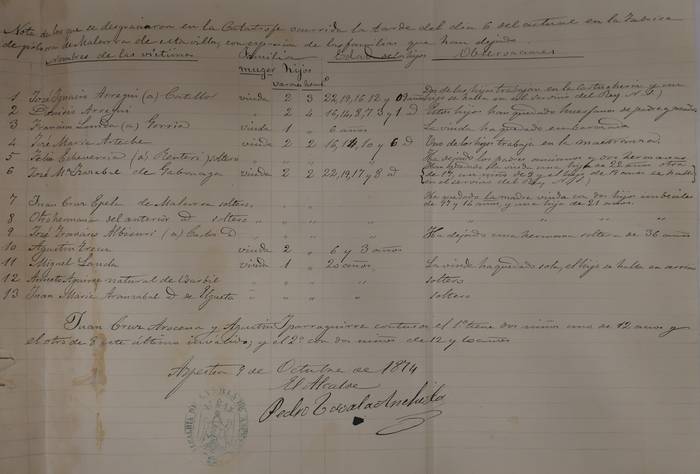 Hauetako bat zen Malcorrakoa, Gipuzkoan funtzionatu zuen lehenengo bolbora-fabrika, langileei ordaintzen zieten Gipuzkoako Foru Aldundiaren estaldura ekonomikoaren babesean. Urriaren 6an gertatu zen leherketak 13 langile hil eta lau zauritu utzi zituen. Hurrengo dokumentuan hildakoen izenak eta beraien familien egoera hauteman daiteke.
