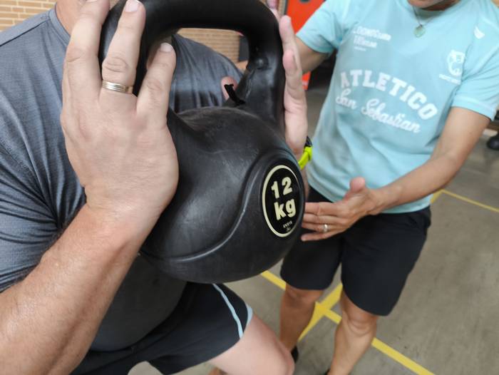 Muñoz: Jarraian giharren testak egiten ditugu, gorputza entzunez. Gero klaseetan, bakoitzaren araberako ariketak jartzen dizkiegu. Demagun sekula aktibitate fisikorik egin ez duen ikasle batekin gaudela; ezin dizkiogu sentadillak edo beste zenbait ariketa jarri lehen momentutik, hori ez da egokia. Gure lan egiteko modua bestelakoa da. Ikasleen parte hartzea ere eskatzen dugu, hau oso garrantzitsua da. Gurekin kiroldegian astean behin edo bitan egon daitezke, baina etxeko lanak bidaltzen dizkiegu. Beraien konpromisoa ezinbestekoa da helburuetara iristeko.