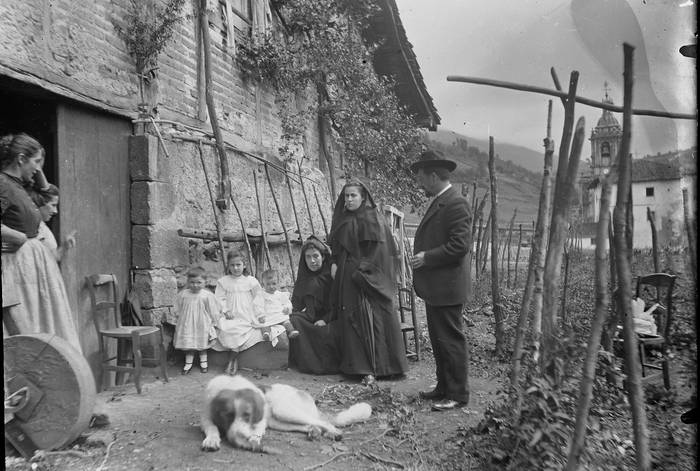 Luto zurrun iluna, haurtzaroaren argia eta inudearen lana. Benetan preziatuak ziren baserrietako inudeak. Kasu honetan, ikus daiteke Tolosako familia dirudunaren bisita bere haurra bularreko esneaz elikatzen zuen inudearen baserrira.