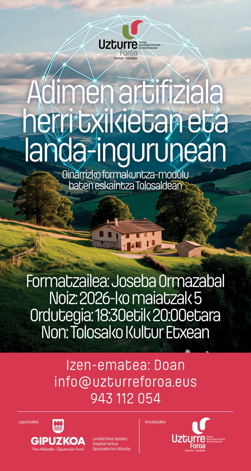 Testuinguru horretan kokatzen da Uzturre Foroaren prestakuntza-proposamen hau. Oraingoan, arreta berezia jartzen da gure eskualdeko landa-eremuaren eta herri txikien ikuspegitik Adimen Artifizialaren erabilerak eta aukerak izan dezakeen garrantzian.