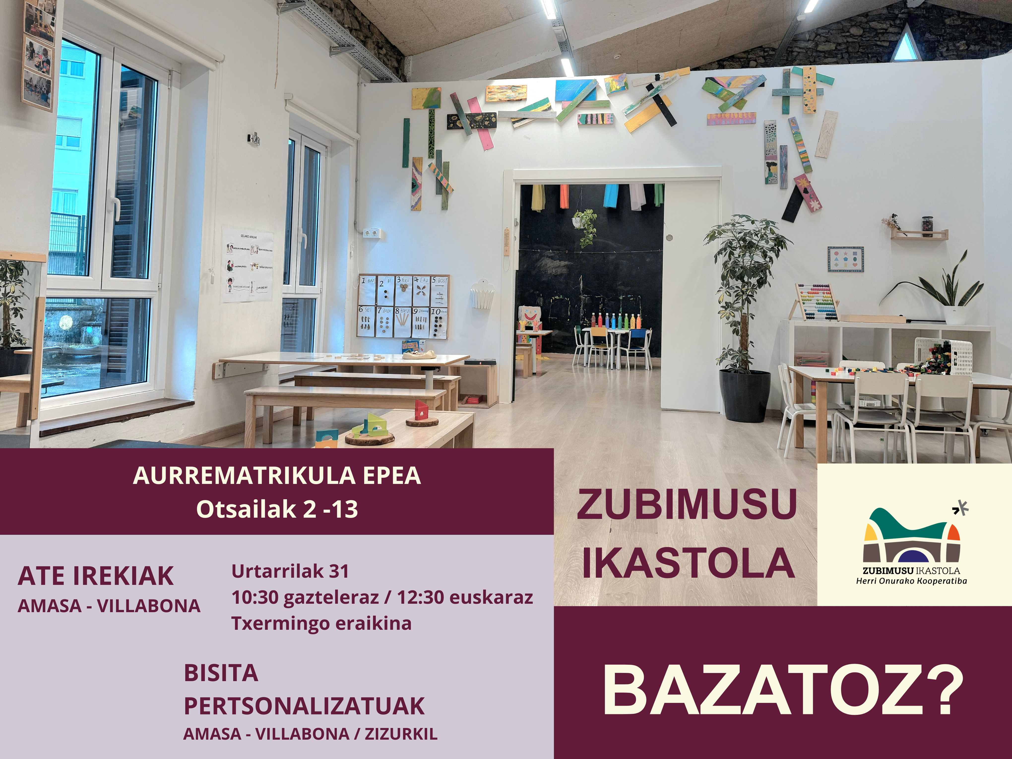 Bisita pertsonalizaturako hitzordua hartzeko, sar zaitez gure webgunean "www.zubimusuikastola.eus" edo deitu 943 692321 zenbakira.