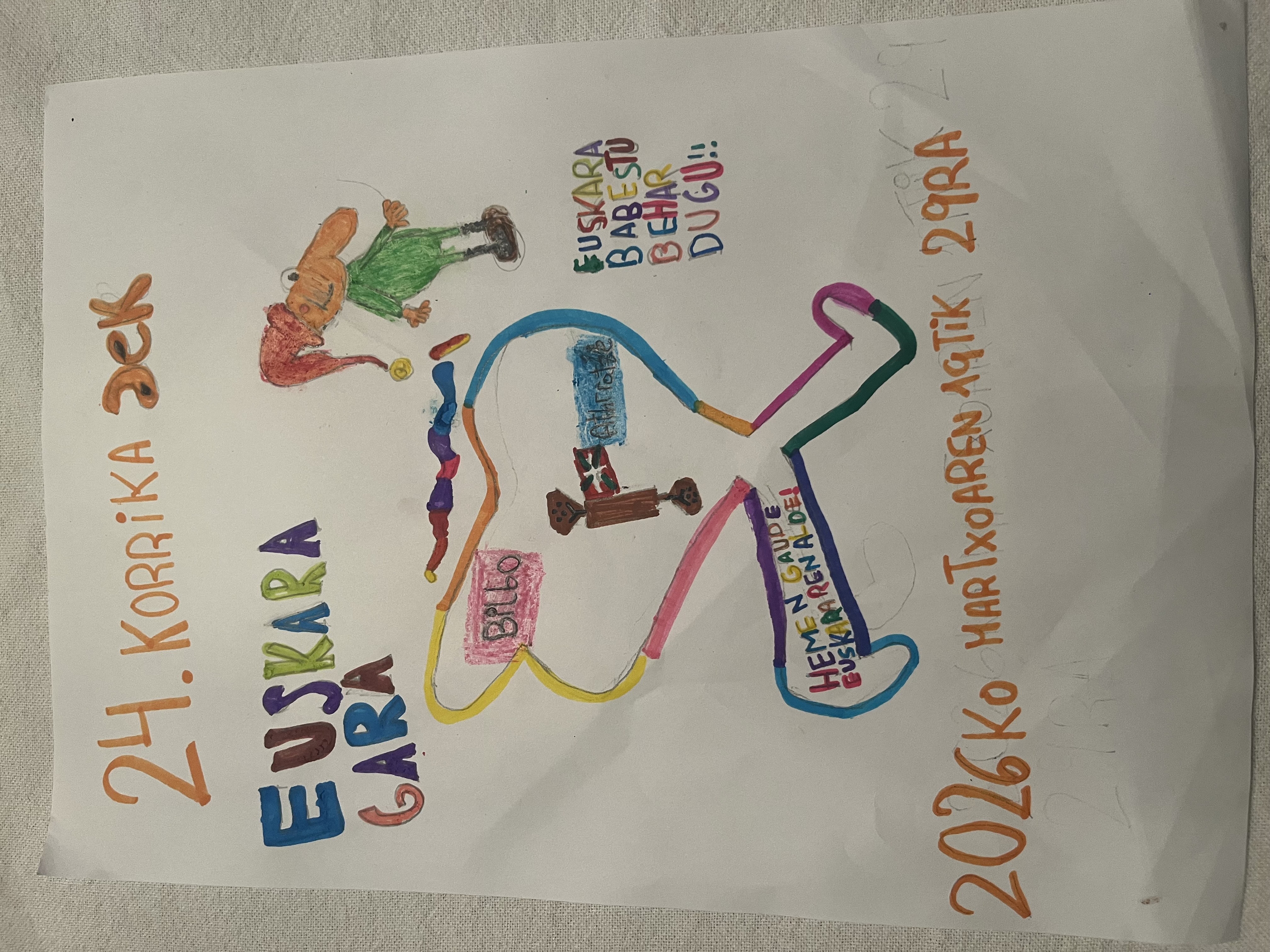 "Euskara. Korrika. Parte-hartzea." Hitz hauek entzutean burura datorkizuna marraztu eta irabazi sari bikainak.