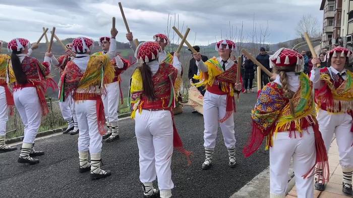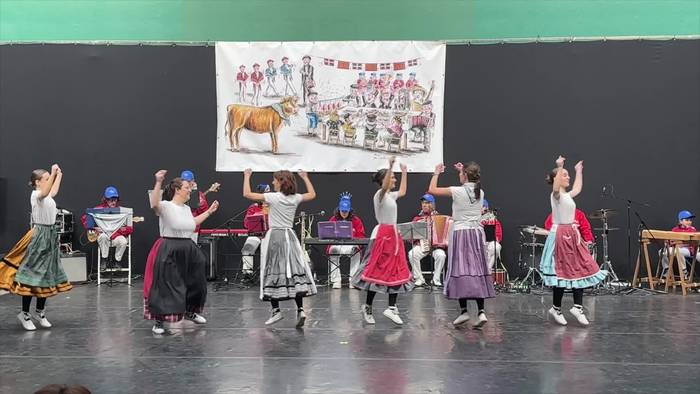 Otsoaren jokoan aritu dira gaur dantzan, Txiribitu aisialdi taldeko gaztetxoak.