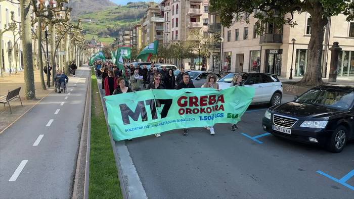 ELA sindikatuko Oria-Goierriko ordezkariak Tolosako Leidor aretoan elkartu dira gaur goizean, ondoren, manifestazioan joan dira Trianguloara. Grebaren aldeko aldarriak zabaldu dituzte, Ana Alkorta ELAko ordezkariak azaldu duen bezala.