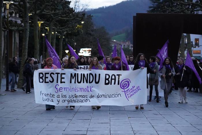 Tolosaldeko Mugimendu Feminista deituta manifestazioa egin dute arratsaldean Tolosan, ‘Beste mundu bat feminismotik. Zapalkuntza sistemen aurrean: antolakuntza eta borroka’ lelopean. Adin guztietako herritarrek egin dute bat mobilizazioarekin, eta zapalkuntza sistemen aurrean feminismotik «beste mundu bat» eraikitzea posible dela aldarrikatu dute.
