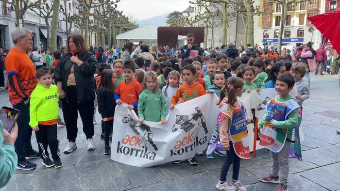 Korrika Txikia egiteko Tolosako Triangulo plazan elkartu dira herriko ikastetxeetako ikasleak.