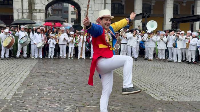 Hasi dira inauteriak. Kabi Alai elkarteko kideek hiriburuetako jaien inguruan egin dute parodia, eta ondoren, Pintxana txarangak bota du txupinazoa.
