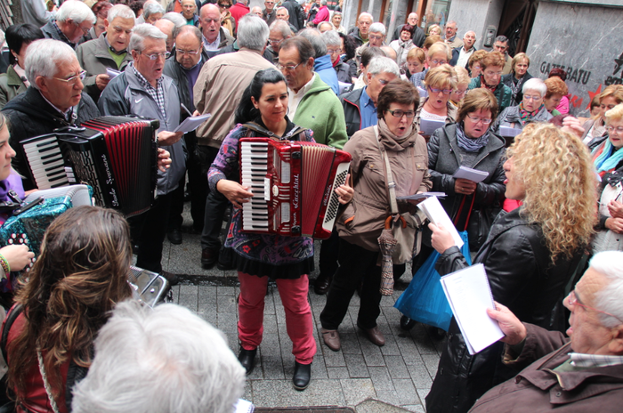 Hilabeteko azken larunbatetan, ohiturak agintzen duenez, dozenaka lagun bildu dira Tolosako kaleetan kantari ibiltzeko. Eguraldia hoberena ez bazen ere, jendea kalera irten da, eta giro paregabea izan da.