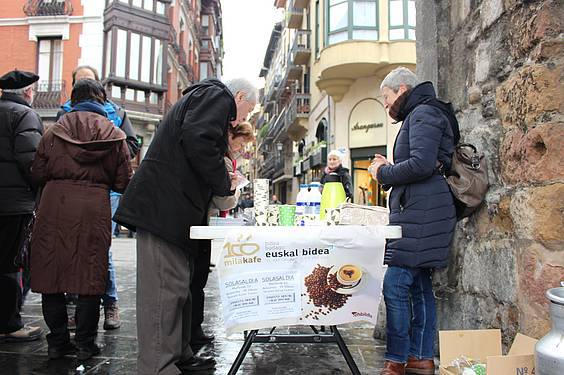 Eh Bildu Tolosako Trinaguloan aritu da eguerdian kafea eta pastak banatuz "Mila kafe" ekimenaren baitan. Honela politikariek herritarren artean kafea eta pastak banatzen zituztela, "erabakitzeko eskubidea oinarri izanik, Euskal Herriaren independentzia helburu duen prozesu eratzailea abian jartzeko eskaintza", egin diete bertaratutakoei.