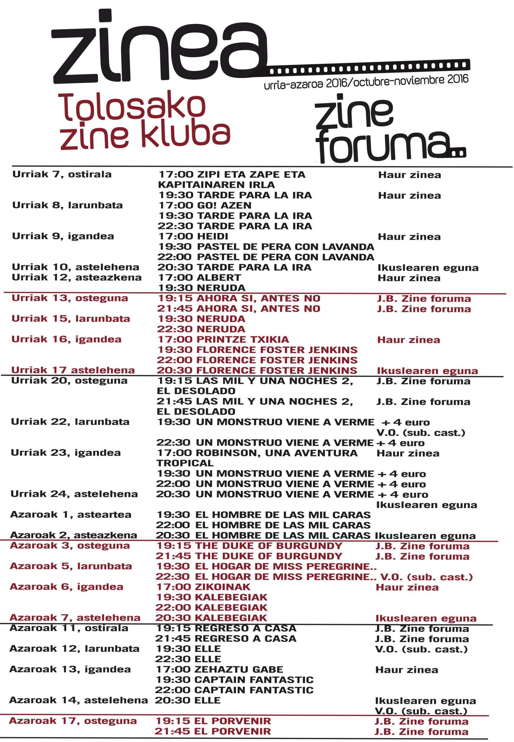 Dokumentu honetan irakur daiteke film bakoitzaren ordutegia.