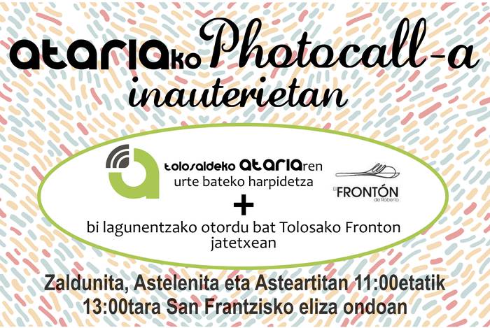 Ataria irratiak, San Frantzizko pasealekuan, zuzen-zuzenean saioa eskaintzen duen bitartean photocall-a izango da ondoan. Bertan ateratako argazki onenak Fronton jatetxean bi lagunentzako otordu bat eskuratuko du eta baita Tolosaldeko Ataria-ren urte bateko harpidetza.