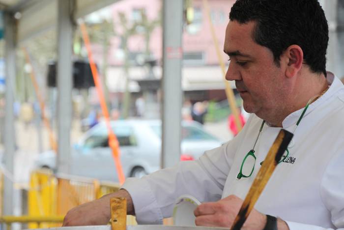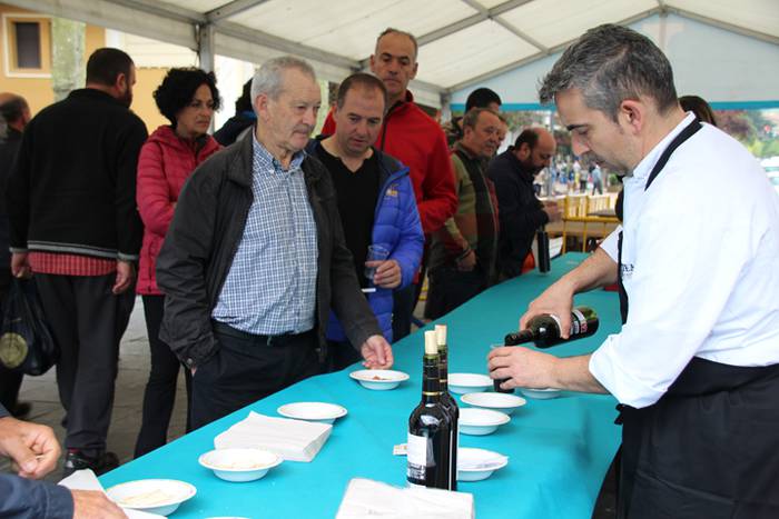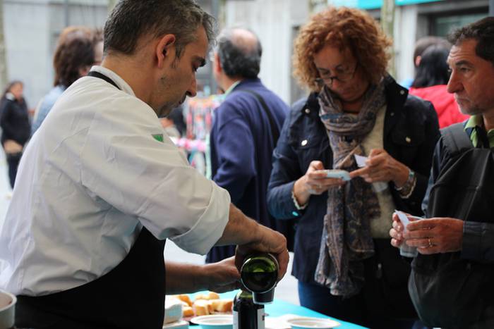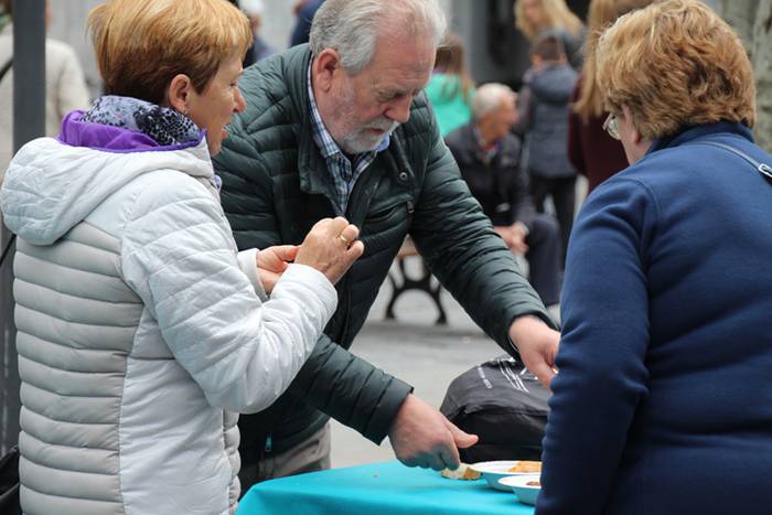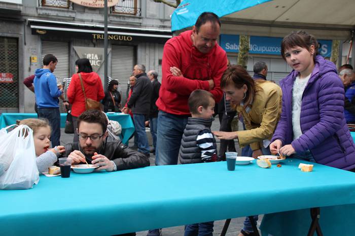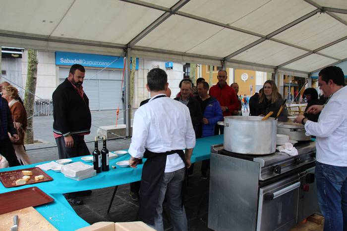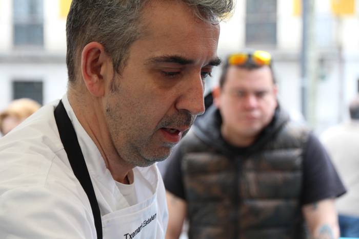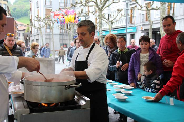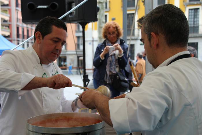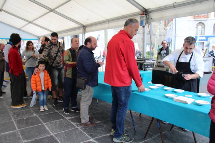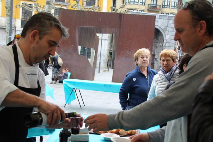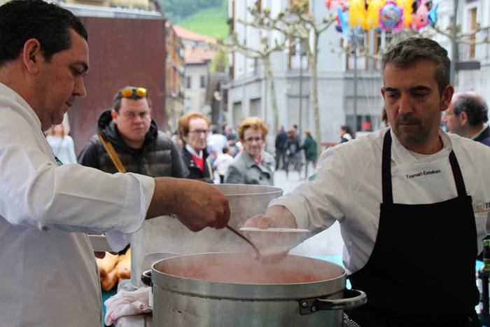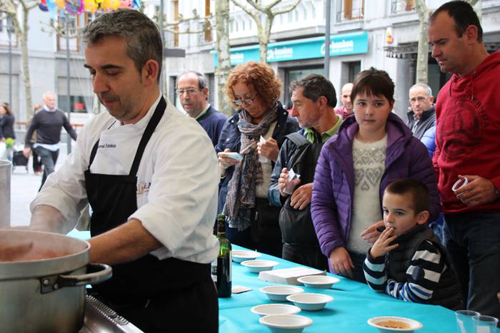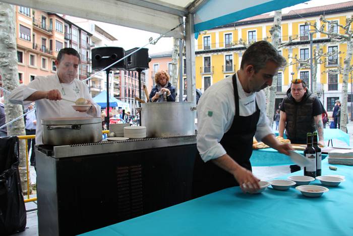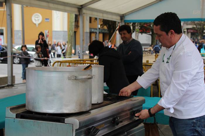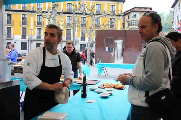 Bertan prestatu eta bertan jan. Astelena jatetxeko Peio Doyharzabal eta Botarri jatetxeko Txemari Esteban aritu dira Triangulo plazan karakolak saltsan prestatzen. 2,50 euroren truke eskura zitezkeen, ardo kopa baten laguntzaz.