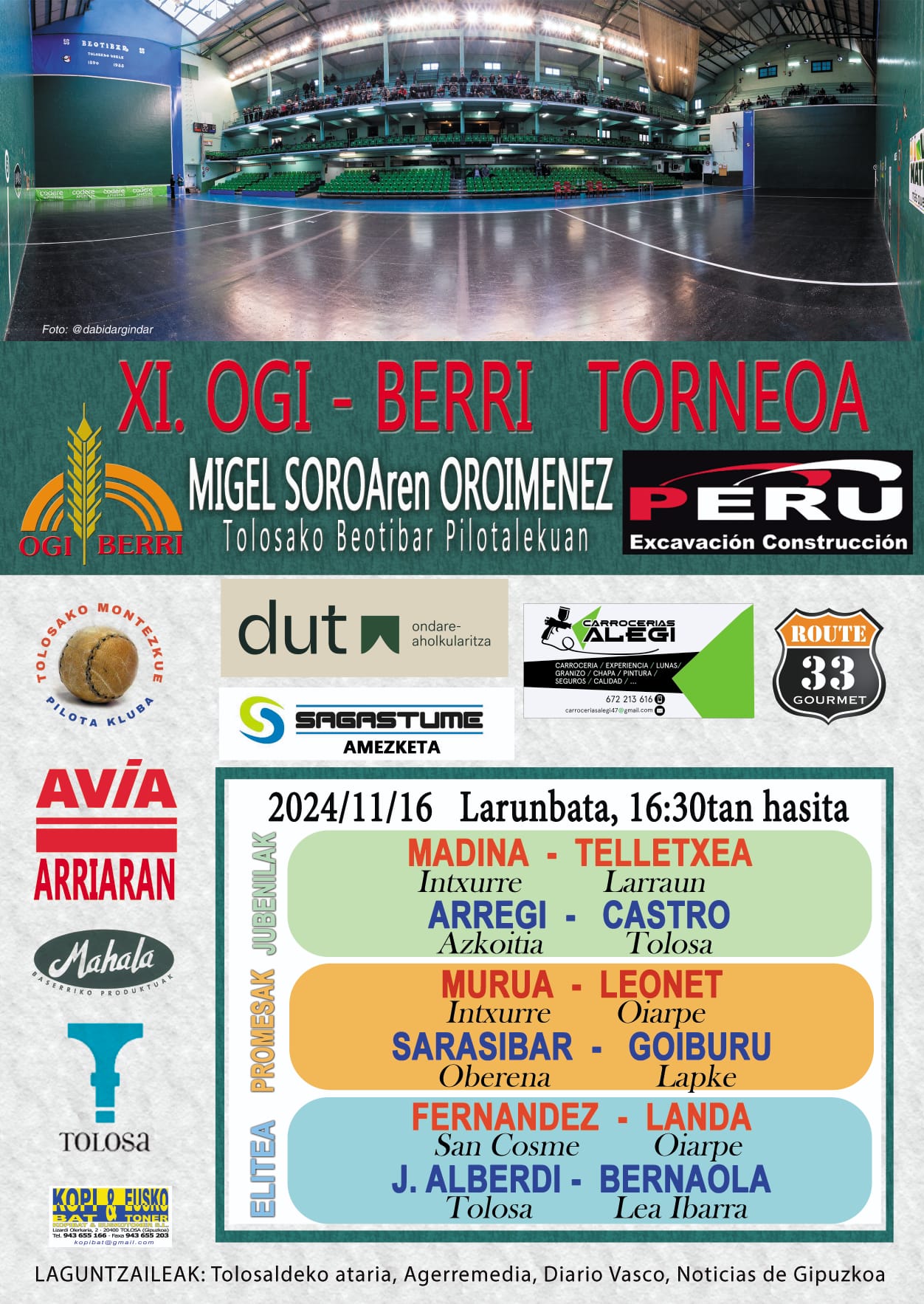 Jubenilen partidan Madina-Telletxea bikotea ariko dira Arregiren eta Castroren aurka. Ondoren, promesen mailakoan, Muruak eta Leonetek jokatuko dute Sarasibar-Goiburu bikotearen aurka. Aipatu Muruak aurrekontratua sinatuta daukala Aspe enpresarekin.