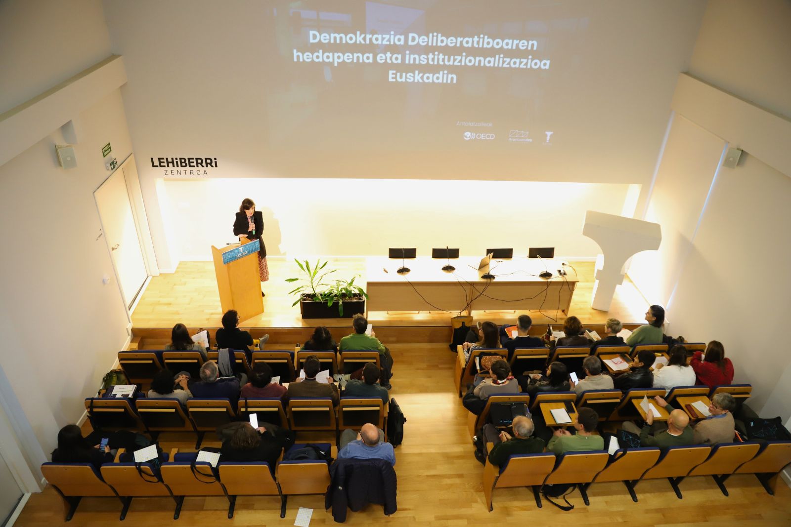 Demokrazia Deliberatiboaren hedapena eta instituzionalizazioa Euskadin jardunaldia ospatu zen, atzo, Lehiberri Zentroan. Euskal erakunde publikoetako, Eusko Legebiltzarreko, demokrazia deliberatiboan aditu diren erakundeetako, berrikuntza eta ezagutza eragileetako eta Ekonomia Lankidetza eta Garapenerako Antolakundeko (ELGA) ordezkariak batu zituen hitzorduak, 40 lagun inguru guztira. Demokrazia deliberatiboaren esparruan tokiko erakundeek abian dituzten esperientzia eta proiektuak ezagutu eta haien garapena partekatzea izan zen saioaren helburua. Amaieran, zenbait hausnarketa partekatu zituzten taldeka.