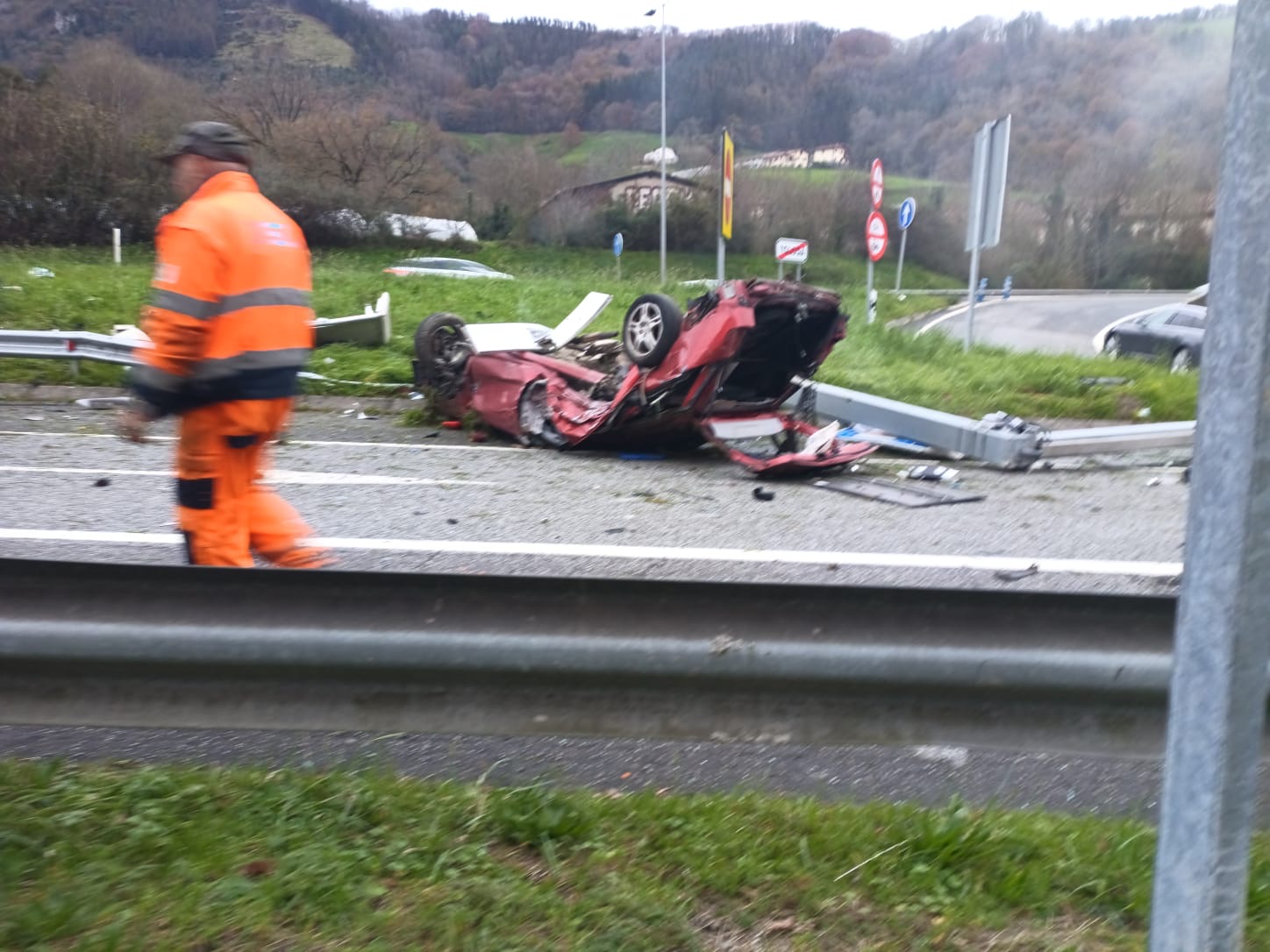 Ezbeharra 17:00ak aldera gertatu da, Tolosako irteeran, Gasteizko noranzkoan. Ibilgailua bidetik atera eta irauli egin da.